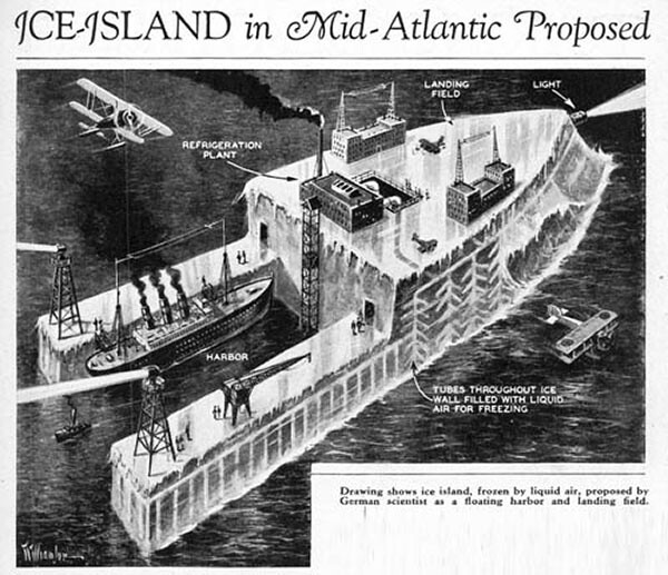 Comme c’est le cas pour tout nouveau matériau ne bénéficiant pas d’une expérience en ingénierie, la construction en Pykecrete s’est avérée beaucoup plus difficile qu’il n’y paraissait. Mais outre les défis physiques, les Américain·es et les Canadien·nes n’ont jamais été enthousiastes et, entre-temps, l’invention des réservoirs de carburant externes pour les avions et les nouvelles bases aériennes au Portugal ont de toute façon résolu le problème du rayon d’action. Cela dit, après la guerre, les Américain·es ont construit Drift Station Bravo, une station météorologique flottante sur un iceberg naturel, dotée d’une piste d’atterrissage pour avions légers, mais ce n’est pas tout à fait une preuve de concept10.