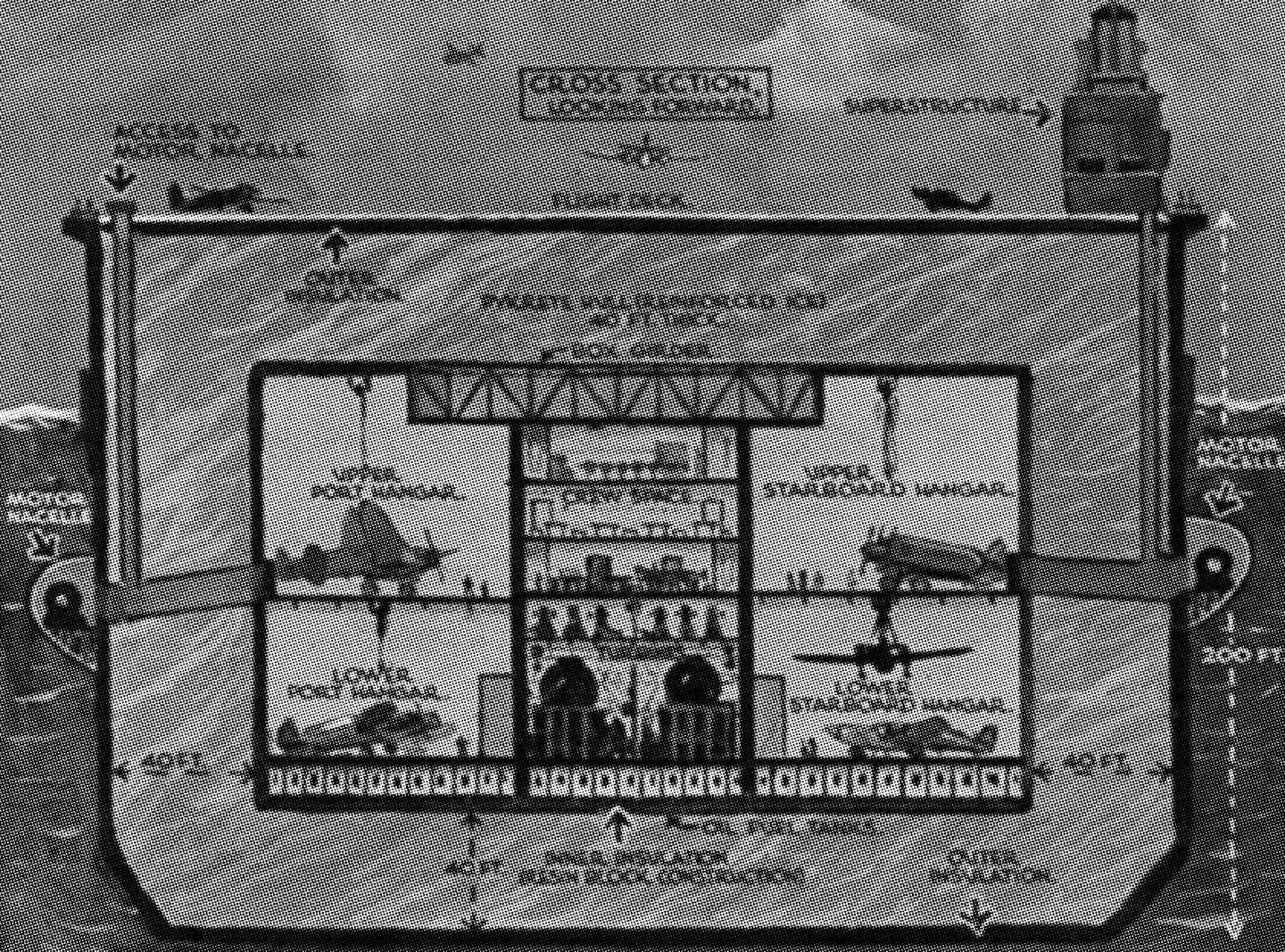 Il serait pourtant plus intéressant de construire une image préliminaire de notre symbebekotecture non pas à partir des structures défensives de Normandie, mais à partir de celles conçues et construites pour son attaque. Ce qui rend ces dernières plus pertinentes réside dans le contraste avec le projet de construction défensive des nazis : les Allié·es ont non seulement dû concevoir des structures entièrement nouvelles pour le débarquement, tout en étant dans une méconnaissance totale des paramètres nécessaires à leur bon fonctionnement. Penser à partir des constructions d’attaque plutôt que de défense nous donne une image très différente de ce à quoi pourrait ressembler la symbebekotecture, et tout à fait distincte des mégalithes immobilisateurs de Virilio et de son collaborateur, Claude Parent3.